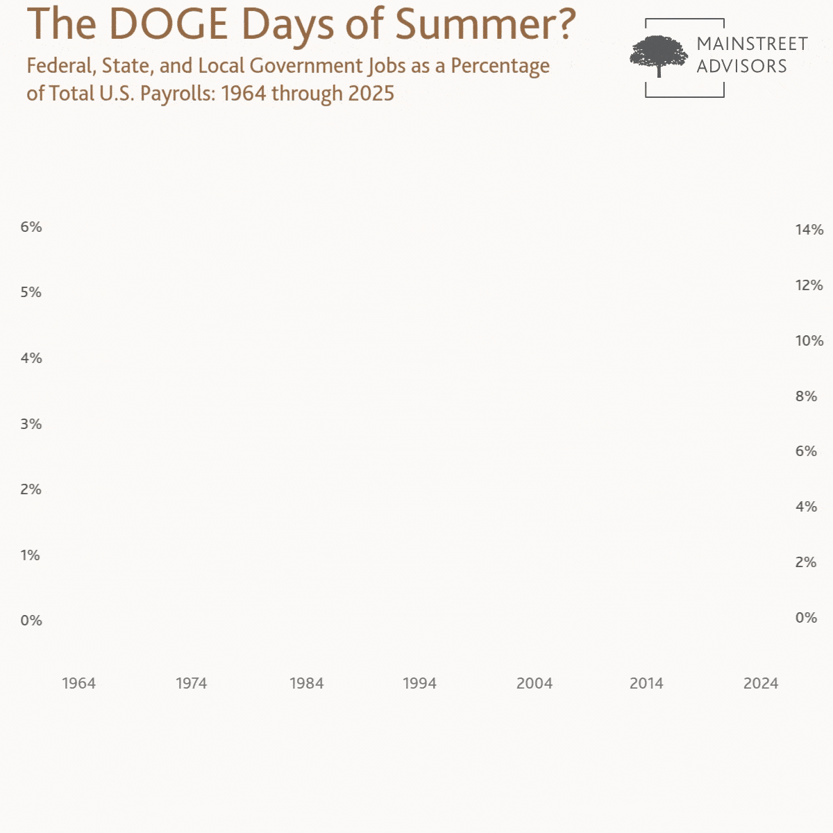 There simply may not be enough federal jobs to cut to cause a material increase in the unemployment rate. DOGE fears are probably overblown partly because Elon Musk does not have the power to fire state and local government employees. As such, there is not a direct DOGE through-line to state and local payrolls, which combined accounted for 12.9% of overall payrolls in March vs. 1.9% at the federal level.